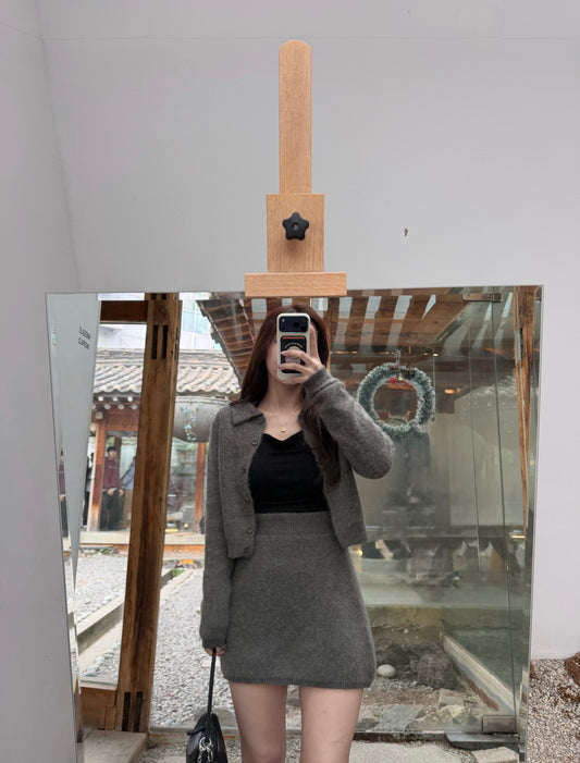 韓系針織毛毛套裝 “短裙”