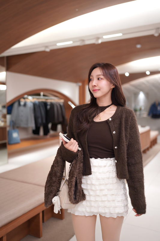 毛毛掛頸bra top連cardigan