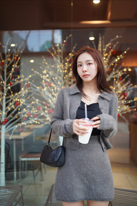 韓系針織毛毛套裝 “短裙”